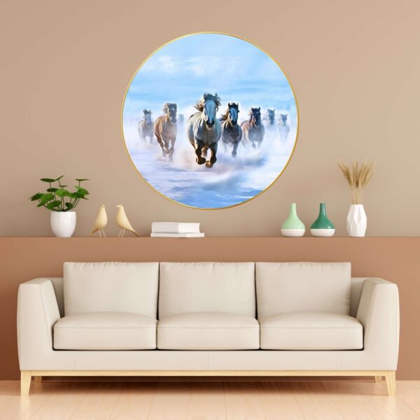 This Golden Round Frame painting with frame is made with high-gloss photo paper, featuring a unique glossy sparkle laminate that enhances the vibrancy and details of the artwork. Whether you are looking for a wall painting for living room or a wall painting for bedroom, this piece will add a touch of divinity and grace to any space. The high-quality finish ensures that this painting for wall decoration stands out.This Golden Round Frame painting big size is designed to fit seamlessly into your home decor, whether you are looking to enhance wall decor for bedroom or create an ambiance of peace in your living room. It is not just a Krishna Radha painting frame but also a meaningful symbol of love and devotion, making it one of the finest